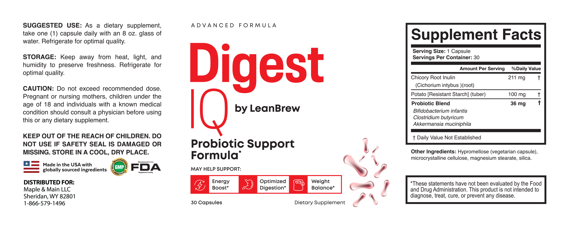 Digest IQ is a probiotic support formula containing 500 Million CFU of beneficial bacteria strains combined with prebiotic fibers. This advanced formula includes Clostridium butyricum, Akkermansia muciniphila, and Bifidobacterium infantis to support digestive wellness.